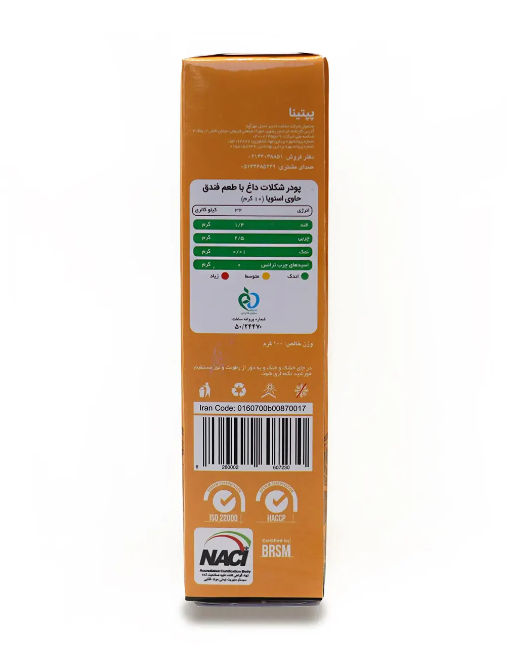 پودر کاکائو قلیایی – پودر شیر فندق – پودر خامه ای کننده غیر لبنی بر پایه روغن نارگیل – شیرین کننده طبیعی استویا