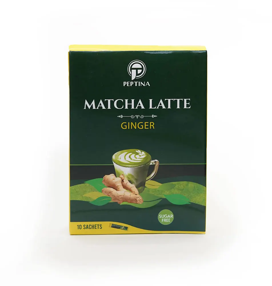 ماچا لته زنجبیل پپتینا یک نوشیدنی وگان و رژیمی است که با طعم شیرین، رنگ سبز زمردی و عطر ملایمش مطابق میل هر سلیقه ای است. خواص پودر ماچا و زنجبیل در این محصول ترکیب شده و نوشیدنی مفید و سالم و در عین حال خوش طعم به ارمغان آورده است. ماچا لاته زنجبیل منبع غنی از ویتامینها، مواد معدنی و البته آنتی اکسیدانهاست که سبب پیشگیری از بروز بیماریهای قلبی، سرطان، بیماری های پوستی و … میشود. شما عزیزان میتوانید از همین صفحه اقدام به خرید اینترنتی ماچا لته زنجبیل در بسته بندیهای ساشهای یا قوطی نمایید.